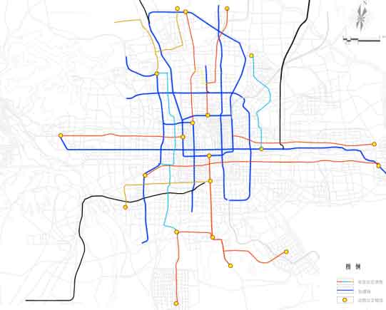 (1)以市区内枢纽(包括德胜门、永定门、北京西站、东直门、四惠、宋家庄、苹果园)为中心向七个轴线方向放射布置;