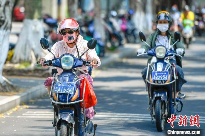 海口街头市民骑电动自行车出行。 骆云飞 摄