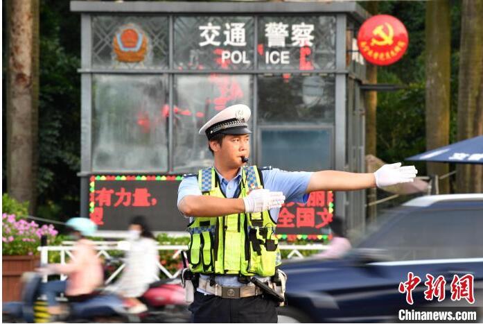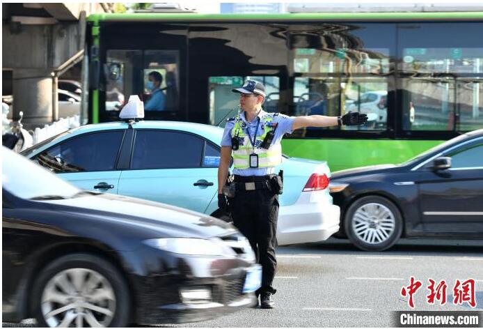 南宁市交通警察在指挥交通。(资料图) 南宁交警供图