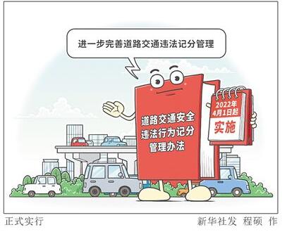 记者25日从公安部获悉,公安部新制订的《道路交通安全违法行为记分管理办法》将自2022年4月1日起实施。