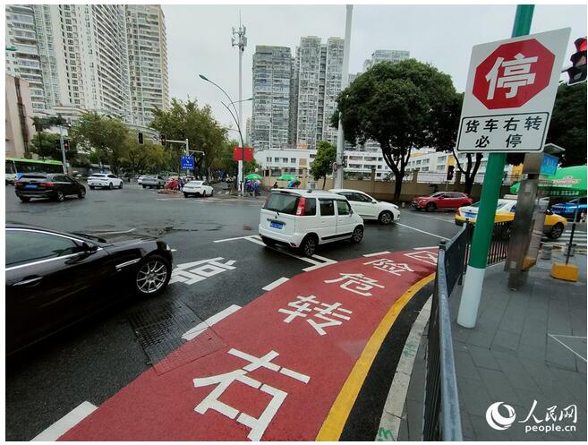 “去年,厦门交警在湖里区港中路殿前一路口、港中路港兴二路口两个试点路口设置了‘右转危险区’标志标线。试行近一年成效显著,交通事故明显减少。”厦门交警有关负责人表示,本次优化升级除了原有路面上标记红色的“右转危险区”外,还新增加了立体的“右转必停”标志。