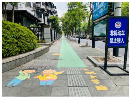 为缓解九曲营路上的交通压力,临平街道启动梅堰未来社区儿童守护项目,联合沿线中小幼学校、浙江大学、中国美术学院、城管、交警等单位部门推出一系列改造措施,形成“延、专、显、安、协”五字护学方针,即放学点线性延伸,各班级规划对应的临时放学点;设置儿童专属“护学通道”,专时管控杜绝校门口车辆穿行;地面增加儿童友好标识和图样,学生可沿着显眼的标识找到上下学的路;九曲营路沿线安防技术升级,根据通学需要重新规划临时停车位及非机动车停车位;志愿者主动加入,多方协同保障孩子们的通学安全。