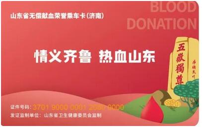 记者从山东省血液中心了解到,6月1日,山东省无偿献血荣誉乘车卡(济南)将正式上线。持卡者可在济南享受免费乘坐城市公共交通工具,免门票游览济南市国有公园、旅游风景区等场所,免交公立医院普通门诊诊查费三项奖励政策。