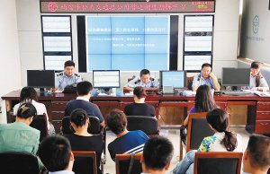 昨日,11家营运公司负责人做客公交服务大厅,接听市民热线记者侯智摄