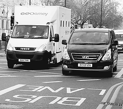 英国的“拼车专道”设在公路的最左端,公车道即是“拼车专道”。 |