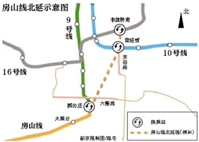 新京报讯 (记者马力)3日,记者从市规划委了解到,地铁房山线北延的规划方案已经获得批复,房山线将从北端的郭公庄站起,继续北延4站,沿途换乘地铁10号线和规划的16号线。