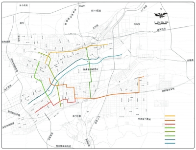 新街线:该线路是轨道交通的加密线,加强洛河南北联系,沿线串联老城历史文化街区、隋唐里坊区以及新区,与轨道交通1、3、4号线换乘。