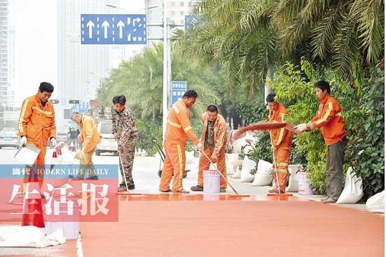 据介绍,彩色公交专用道使用暗红色彩色路面主要有两个方面的优点:一方面可强化视觉效果,起到交通彩色信号的作用,更易保障公交路权优先;另一方面,彩色公交专用道采用的是彩色防滑涂料,因为颗粒大,摩擦系数高,可有效降低道路交通事故伤亡率。英国的研究部门调查表明:通常情况下可使事故伤亡率降低50%,在湿滑路面更可使事故伤亡率降低70%。