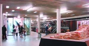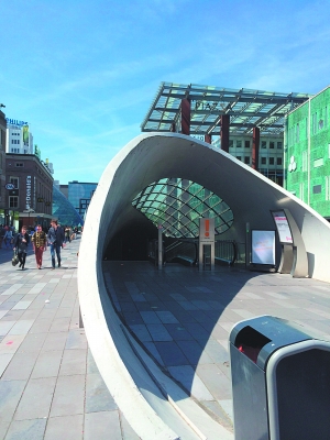 自行车的停放也激发了设计师的想象。在荷兰埃因霍温市中心的广场上,有一个很酷的设计,在广场上,你会看到一个凸出的拱形入口斜插在地面上,是非常前卫的非线型流线。当你看到一些人骑着自行车来到入口,才明白原来这里是一个地下自行车停车场。有自动扶梯供自行车上下使用,地下是宽敞明亮的空间,自行车被有序排列着。地下空间的中心位置还有玻璃盒子,里面是一些古老的砖石,原来这里保留着几百年前埃因霍温的遗迹。这个别出心裁的设计已成为埃因霍温的一个景点,既解决了广场的自行车停放问题,还保护了历史遗迹,同时也成为城市广场的一个特殊地标。