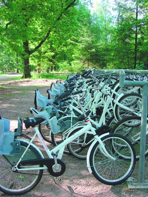 这座公园非常大,有55平方公里,于是,设计师提出了自行车共享系统,这个独特的想法后来在全世界各地被复制。公园为游客提供免费的自行车,自行车是白色的,而且有不同款式,包括成人车和儿童车,成人车都带后座,满足全家出游需求。公园内的几个重要景点,都有自行车的存放点。这些优雅的白色坐骑带着游客游览公园的不同自然景观和艺术品,也成为国家公园中不同景观中穿梭的亮点。