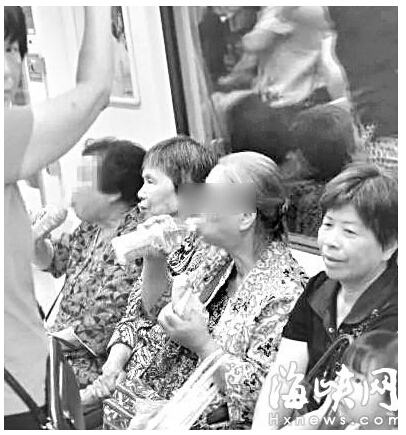 地铁一号线南段试乘时,有市民在车内吃东西(网友供图)