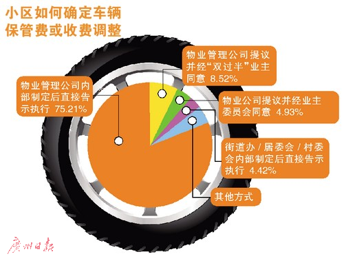 在关于小区如何确定车辆保管费或收费调整的方式流程,网络调查数据显示有高达75.21%的受访者表示是由“物业管理公司内部制定后直接告示执行”,而经“双过半”业主同意的定价或调价仅占10.19%,这其中,由物业公司提议的占8.52%,由街道办、居委会或村委会提议的占1.67%。