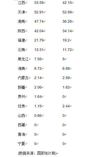 在榜尾端,有3个省份没有汽车整车生产,分别是西藏、青海和宁夏。有7个省份虽有整车生产,但产量在10万辆以下,其中内蒙古、新疆、贵州、甘肃等省份都只有一两万辆。