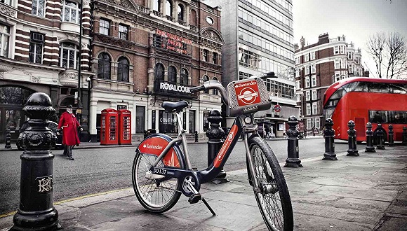 伦敦街头的“桑坦德”共享单车