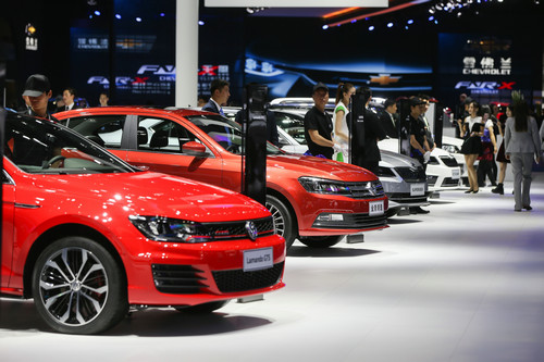 资料图片:2017年4月19日,2017上海国际车展在上海国家会展中心拉开帷幕,这是大众汽车展出的车辆。新华社记者 丁汀 摄