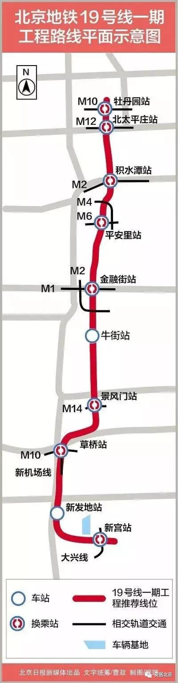 北京地铁19号线,全长60余公里,线路分两期建设。