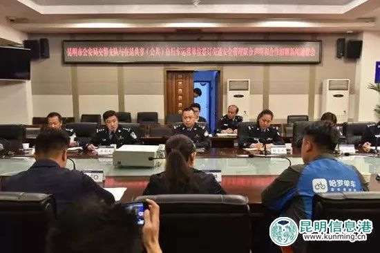 会上,昆明交警与共享单车运营企业就共享单车交通秩序管理工作,签订《合作细则》、《联合声明》。