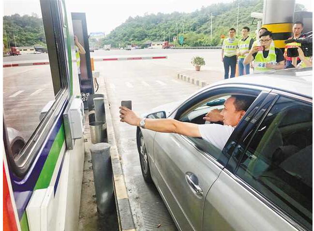 司机正在渝遂高速G93沙坪坝收费站用手机扫码支付通行费。(本报资料图片) 记者 杨永芹 摄