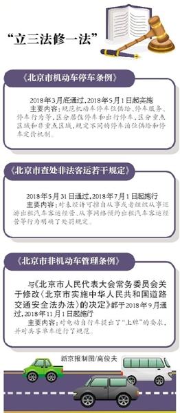 市人大常委会相关负责人表示,他们对治理中必须解决、但又超出具体法规管理范围的内容,采取同步修改既有法规的方式,主动提出修改实施道路交通安全法办法。通过“立三法修一法”的组合拳,既划清了机动车、非机动车的管理界限,又实现了和上位法、同位阶法协调一致,既保证了单部法规有效解决突出问题,又兼顾了同一领域法规衔接,形成了对北京动态、静态两大交通体系和机动车、非机动车两类重点交通工具的有效覆盖。