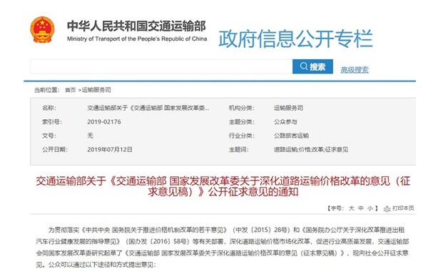 附《交通运输部 国家发展改革委关于深化道路运输价格改革的意见(征求意见稿)》原文: