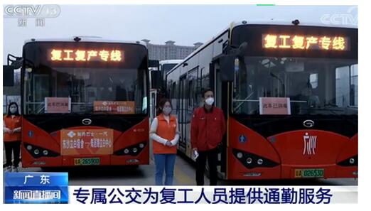 此外,为了满足员工返岗后的出行需求,广东还推出了定制复工服务专线,让公交车辆进社区、进厂区,为复工复产提供通勤服务保障。其中广州推出专属公交,员工可以在指定站点特定时间刷卡上车,直达工作地点;深圳市推出“防疫复工专线巴士”,为就业聚集区内的370余家企业提供员工上下班通勤服务。