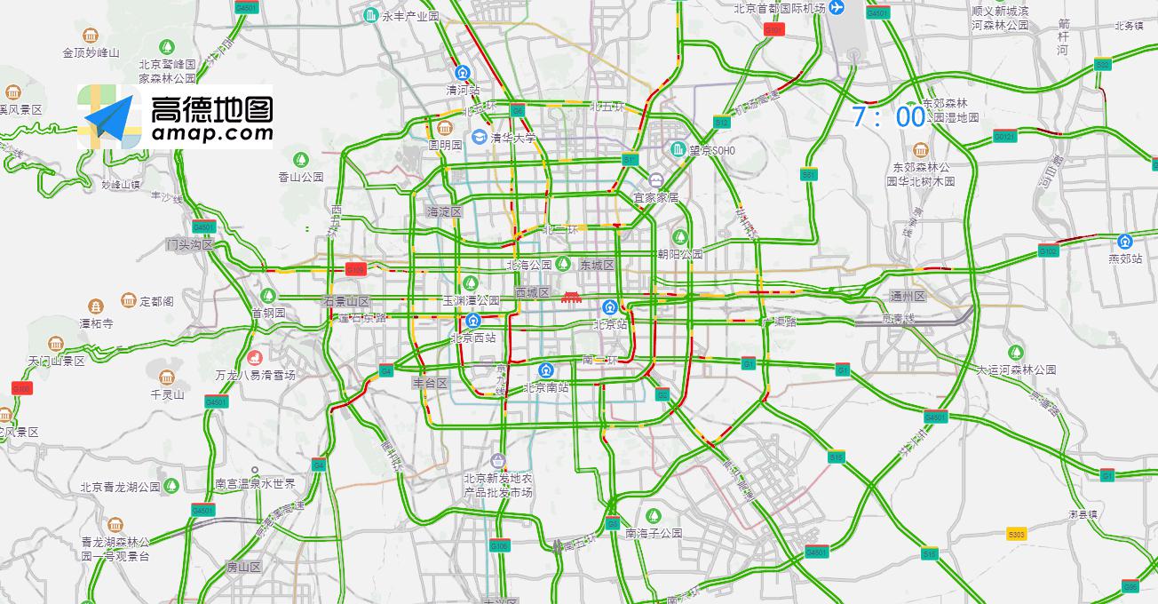 周末期间,预计市区周边大兴野生动物园、八达岭长城、古北水镇、百里画廊等公园景区将成为出游热点地区,京承高速、京藏高速、京平高速、西五环、西六环部分路段容易出现车流集中的情况。