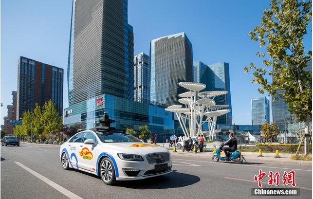 10月13日,自动驾驶的出租车上路行驶,通常情况下随车安全员无需对车辆施加控制。日前,百度自动驾驶出租车服务在北京向公众开放,市民可在北京经济技术开发区、海淀区、顺义区的数十个站点,通过手机应用程序下单,免费试乘自动驾驶出租车服务。