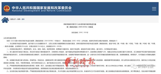 近日,国家发展和改革委员会官网发布《国家发展改革委关于山东省济南市城市轨道交通第二期建设规划(2020-2025年)的批复》,这意味着,济南轨交第二期建设规划原则上得到同意。