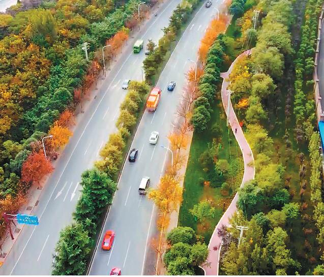 11月16日下午,记者在我市曲江新区南三环沿线看到,平坦的小道、彩色的植被、别致的景观造型、舒适的配套设施,蜿蜒的红色自行车专用通勤道路,从绿化林带中穿过,市民行走、骑行在其中别有一番风情。据了解,这条自行车专用通勤道路东起曲江大道,西至长安南路,全长10.5公里,绿化提升面积15万平方米。通勤道在设计过程中,依托现有道路的地形,增加了桂花、雪松等落叶、常绿乔木,不仅提升了南三环的景观品质,还兼具了降噪、防尘等功能。