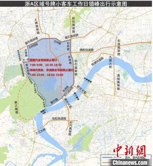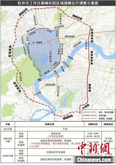 杭州市工作日高峰时段区域错峰出行调整示意图。 杭州市交通运输局供图