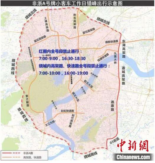 非浙A号牌小客车工作日错峰出行示意图。 杭州市交通运输局供图