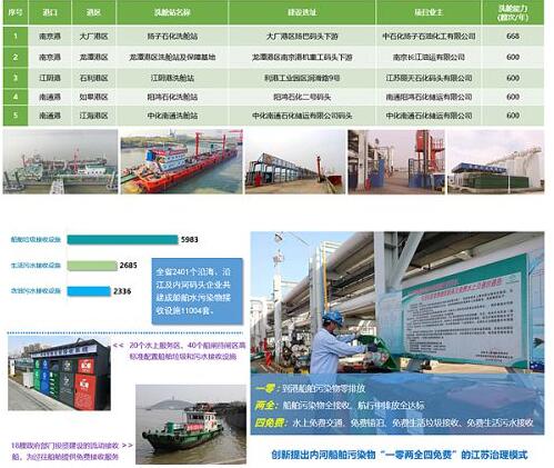 去年,我省400总吨以上货船全部完成生活污水防污设施改造,400总吨以下货船防污改造1.73万余艘,占全国总数近60%;全省港口码头基本做到船舶垃圾、生活污水、含油污水接收设施的全覆盖,实现“应收尽收”;全面关停长江江苏段水上临时过驳区,建成5座长江干线洗舱站;新建码头粉尘综合防治率达100%,完成664家港口企业粉尘在线监测系统建设;全省原油、成品油装船泊位57个,全部完成油气回收设施建设;1133个内河码头环保整治工作全面完成。