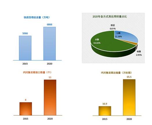 据统计,铁路货物发送量从“十二五”末的5066万吨增长到2020年的6866万吨,增长35.5%;沿海主要港口大宗货物铁路和水路集疏港比例提升至94.2%,公路运输量减少超过1900万吨,水路货运周转量占比63.2%,居全国前列;内河集装箱港口达11个、运输量达65.5万标箱,分别是2015年的2.75倍和3.87倍;全省甩挂运输蓬勃发展,培育85家无车承运试点网络货运平台,运满满、中储智运成为网络货运独角兽企业。