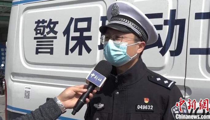 上海市公安局松江分局交通警察支队车管宣传大队副大队长彭思衍接受中新社记者采访 张践 摄