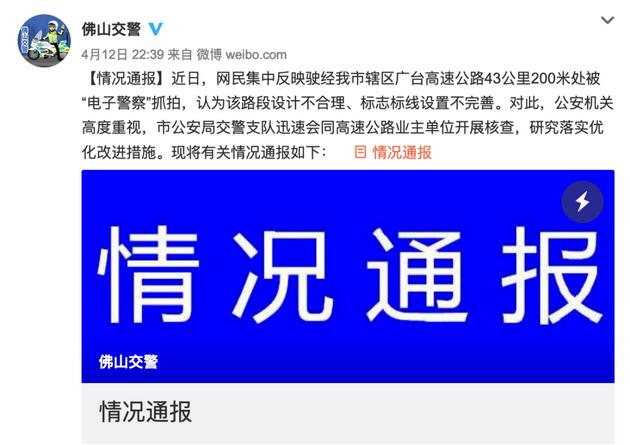 广东省佛山市公安局交通警察支队此前发布的情况通报中称,该路段单向年均车流量约为1900多万车次,该处标志标线、提示牌由道路业主单位按照《道路标志标线》国标设置,经过验收合格后投入使用。